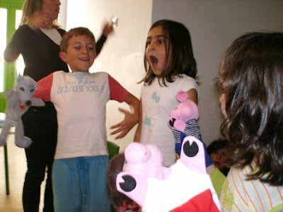 No dia em que os amigos da sala 6 apresentaram o seu conto, sobre a lenda da sopa da pedra de Almeirim, aconteceu uma coisa inesperada: o Folhas soltou um bichinho invisível, mas muito insidioso, que... bem, não sabemos ao certo como actuou, mas a verdade é que num ápice, as professoras que acompanhavam as turmas dessa sessão estavam todas sentadas no chão, prontinhas para uma sessão extraordinária da história O Caldo de Pedra.